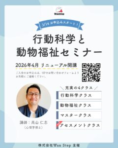 Wan Stepセミナー「行動科学と動物福祉セミナー」はリニューアルいたします!